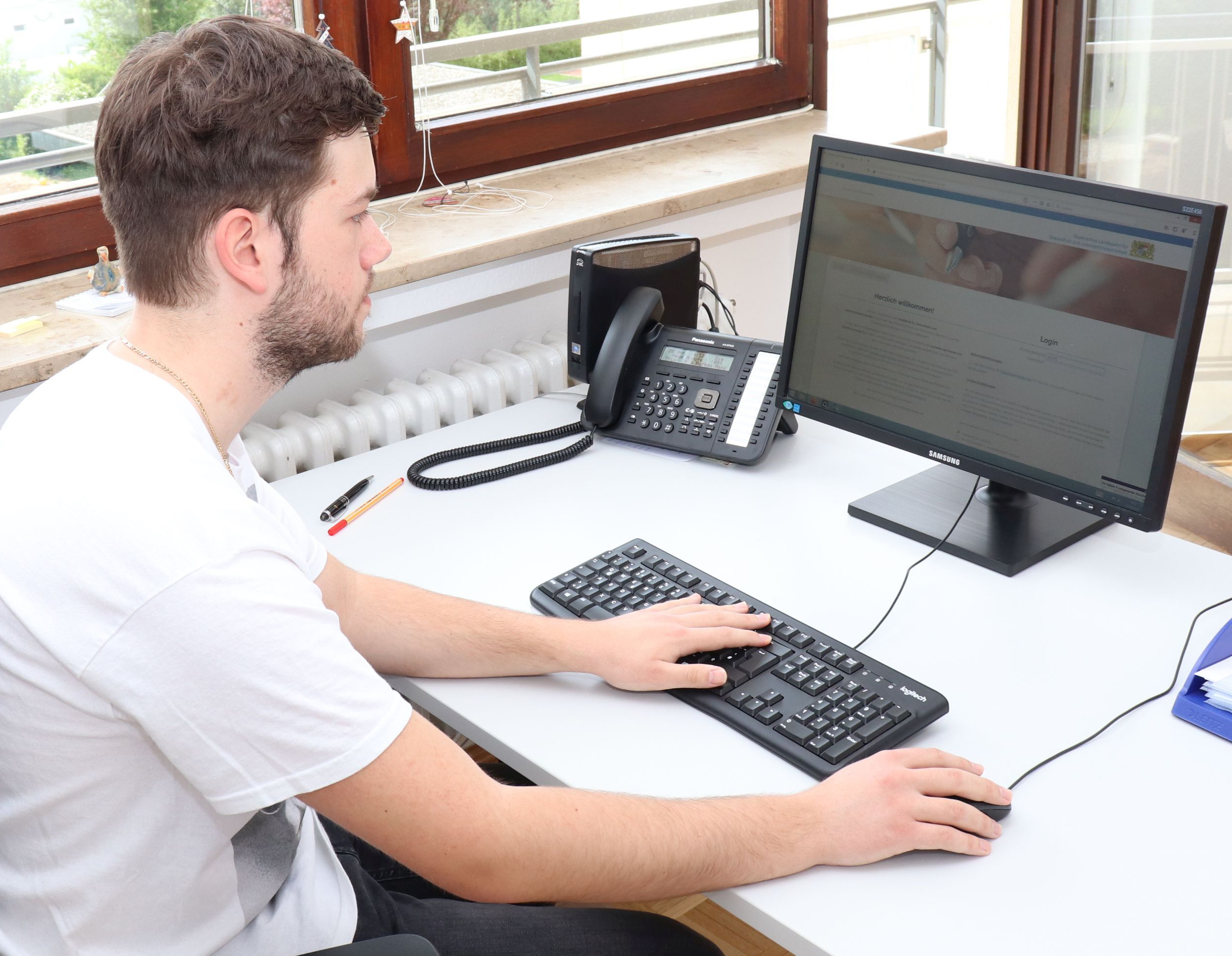 Beschreibung: Der angehende Finanzbeamte Yannik Geisinger ist ein Mitglied der neu aufgestellten Contact Tracing Teams, die dem Gesundheitsamt zur Verstärkung zugeteilt worden sind. Derzeit wird er zusammen mit zehn weiteren Beamten-Anwärtern und - und -Anw&a