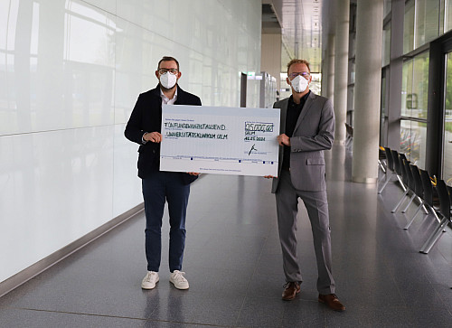 Beschreibung: Seit drei Jahren unterstützt die Kuhn Elektro-Technik GmbH das Forschungsprojekt zur Krebsfrüherkennung von Professor Alexander Kleger (rechts) am Universitätsklinikum Ulm. Auch in diesem Jahr hat Geschäftsführer Florian Kuhn (lin