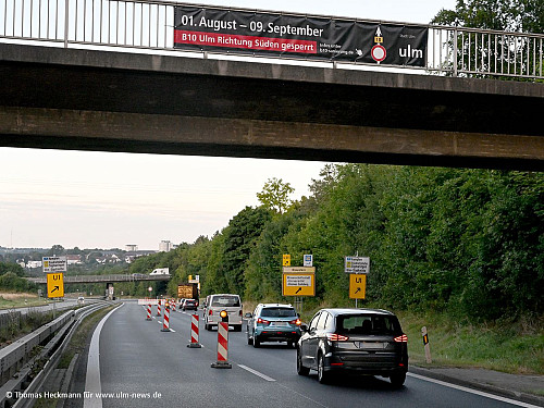Die angekündigte Sperrung der Bundesstraße 10 vor Ulm in Richtung Süden hat am ersten Tag im Berufsverkehr zu großem Stau geführt, manche Autofahrer waren eine Stunde länger als gewohnt unterwegs.