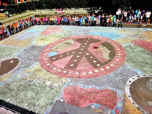 Riesenstraßenmalkreidebild ‚Integration‘ an der Eduard-Mörike-Schule in Ulm-Böfingen
