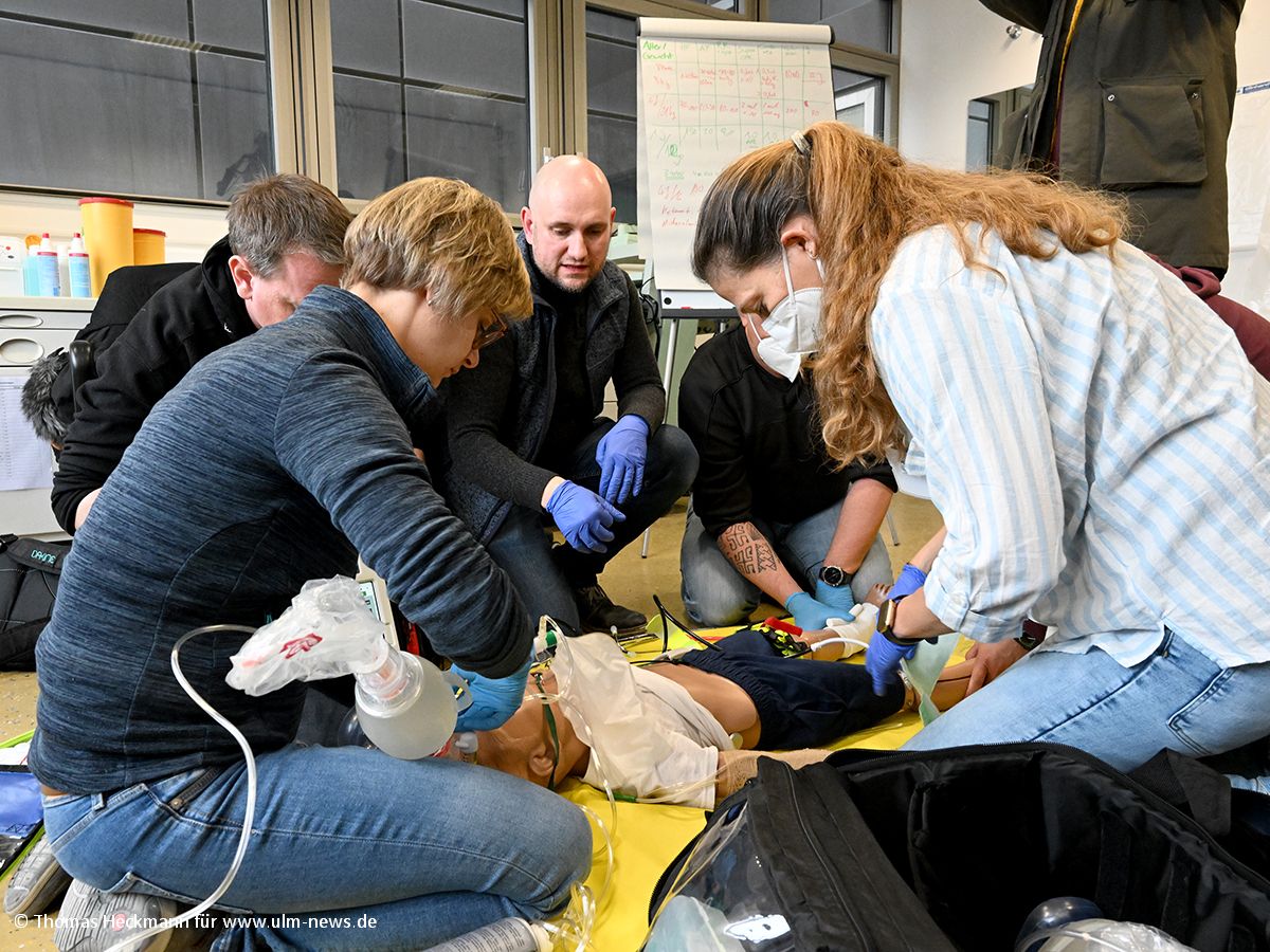 Beschreibung: Notärzte und Rettungsdienstmitarbeiter müssen in solchen Situationen ruhig und besonnen reagieren können, das haben sie am Wochenende in Ulm vertieft geübt.