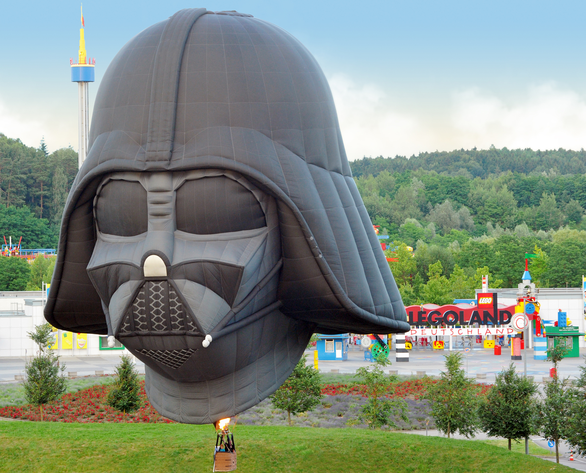 Anfang Juni eröffnete der Freizeitpark sein neues Star Wars Universum im MINILAND. Grund genug für den einzigartigen Heißluftballon in Form des Darth Vader Kopfes, seinen Lego Kollegen im Star Wars -Bereich einen höchst beeindruckenden Besuch abzustatten. Mit einer Höhe von 26 Metern ist der Ballonkopf 185-mal so groß wie sein LEGO Pendant im Park, denn die Darth Vader Figur im Miniland, die aus 180 handelsüblichen Lego-Steinen zusammengebaut wurde, ist gerade mal 14 cm groß. Im neuen Legoland Star Wars Universum sind einige der bekanntesten Szenen der sechs Star Wars Filme und der Animationsserie Star Wars: Tthe Clone Wars aus über 1,5 Millionen Lego Steinen nachgebaut. Seit seiner Eröffnung Anfang Juni haben die 2.000 Modelle rund 450.000 Gäste begeistert. Der aus Belgien stammende Ballon ist auf der ganzen Welt sehr gefragt, aus Malaysia kommend wurde er direkt nach dem Legoland-Besuch nach Amerika verschifft.