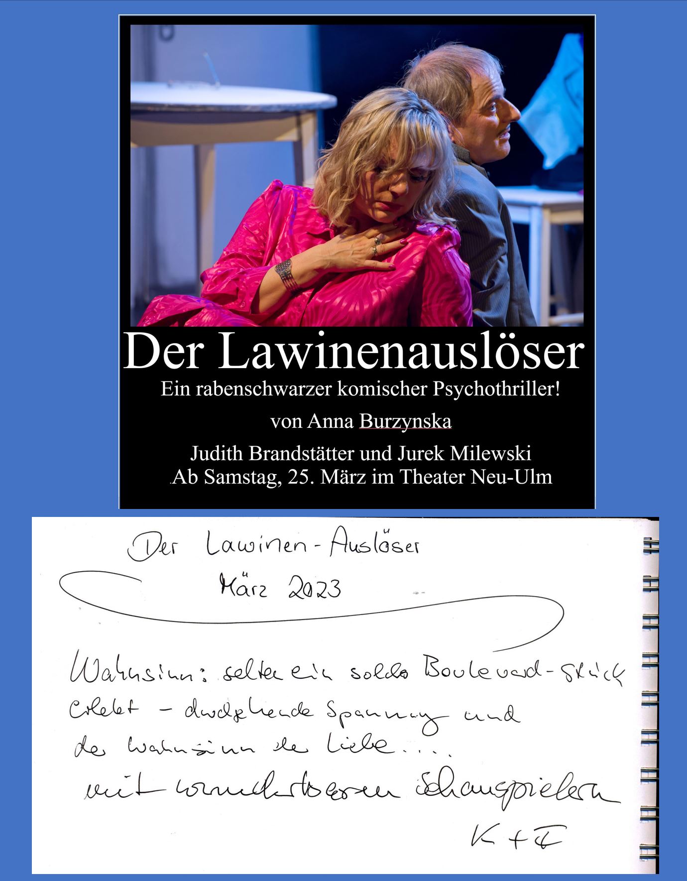 Das Publikum in der Region, welches im Theater Neu-Ulm "Die schwarze Witwe" aus der Feder derselben Autorin mit demselben Schauspieler-Duo Judith Brandstätter und Jurek Milewski (beide Salzburger Publikumslieblinge) so sehr gemocht hat, kommt somit wieder auf seine Kosten.