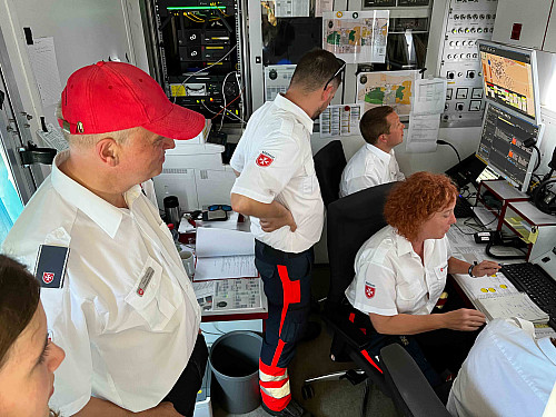 Beschreibung: Sämtliche Kräfte der Malteser werden durch eine zentrale Einsatzleitung koordiniert.