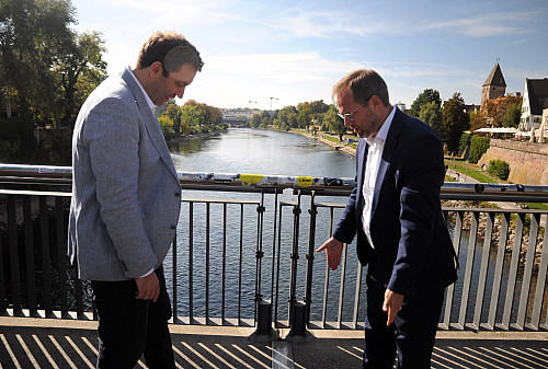Treffpunkt Grenzlinie. Der Ulmer SPD-Kreis- und Fraktionsvorsitzende Martin Ansbacher und der SPD-Parteivorsitzende Lars Klingbeil spazierten am Freitag von der Herdbrücke aus über den Markplatz zum Ulmer Münster. Dort wurden die beiden von Münsterdekan Dr. Torsten Krannich und der Münsterbaumeisterin Dr. Heidi Vormann zu einer kurzen Führung durch das Gotteshaus empfangen. Martin Ansbacher sagte: „Ich freue mich sehr, dass sich Lars Klingbeil trotz vollen Terminkalenders Zeit für mich und Ulm genommen hat und ich mit ihm über bundespolitische Unterstützung bei kommunalpolitischen Themen wie Wohnungsbau, Klimaschutz oder öffentlicher Nahverkehr sprechen konnte.“