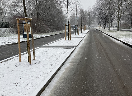 Die jetzt noch fehlenden Fahrbahnmarkierungen, der Deckbelag des barrierearmen Fußweges und Restarbeiten an der verbliebenen Rampe zur Anbindung der Obergeschosse beim Einkaufzentrum folgen, sobald das Wetter mitspielt. Im Rahmen des Stadtteilentwicklungskonzeptes Wiblingen war im Herbst 2021 begonnen worden, das Areal des Tannenplatzes im Hinblick auf städtebauliche Verbesserungen näher zu untersuchen. Zusammen mit der Bürgerschaft und externen Planungsbüros wurden von der Verwaltung Ideen entwickelt und ausgearbeitet. Im Zentrum der Überlegungen standen neben der städtebaulichen Neustrukturierung des gesamten Nahversorgungs- und Schulzentrums am Tannenplatz auch die Gestaltung und Nutzung des öffentlichen Raumes. Aus zunächst drei Szenarien wurde eine Vorzugsvariante zur weiteren Umsetzung bestimmt und dem Ulmer Gemeinderat im November 2022 zum Beschluss vorgelegt. Zum "Stadtteilentwicklungskonzept Wiblingen" gehörten auch der Abbruch des Fußgängerstegs über den Wiblinger Ring (Höhe Biberachter Straße / Tannenplatz Zentrum) und die Umgestaltung der Fahrbahn am Tannenplatz Zentrum selbst. Der Steg wurde bereits am letzten Augustwochenende unter Vollsperrung des Wiblinger Ringes abgebrochen. Die Kosten des Abbruches belaufen sich auf rund 170.000 Euro. Der nun fertiggestellte Bau des Fußwegs und die Umgestaltung des Wiblinger Ringes samt Beleuchtung und neuer Bäume in der ehemaligen Sperrfläche kosten die Stadt Ulm weitere ca. 285.000 Euro.