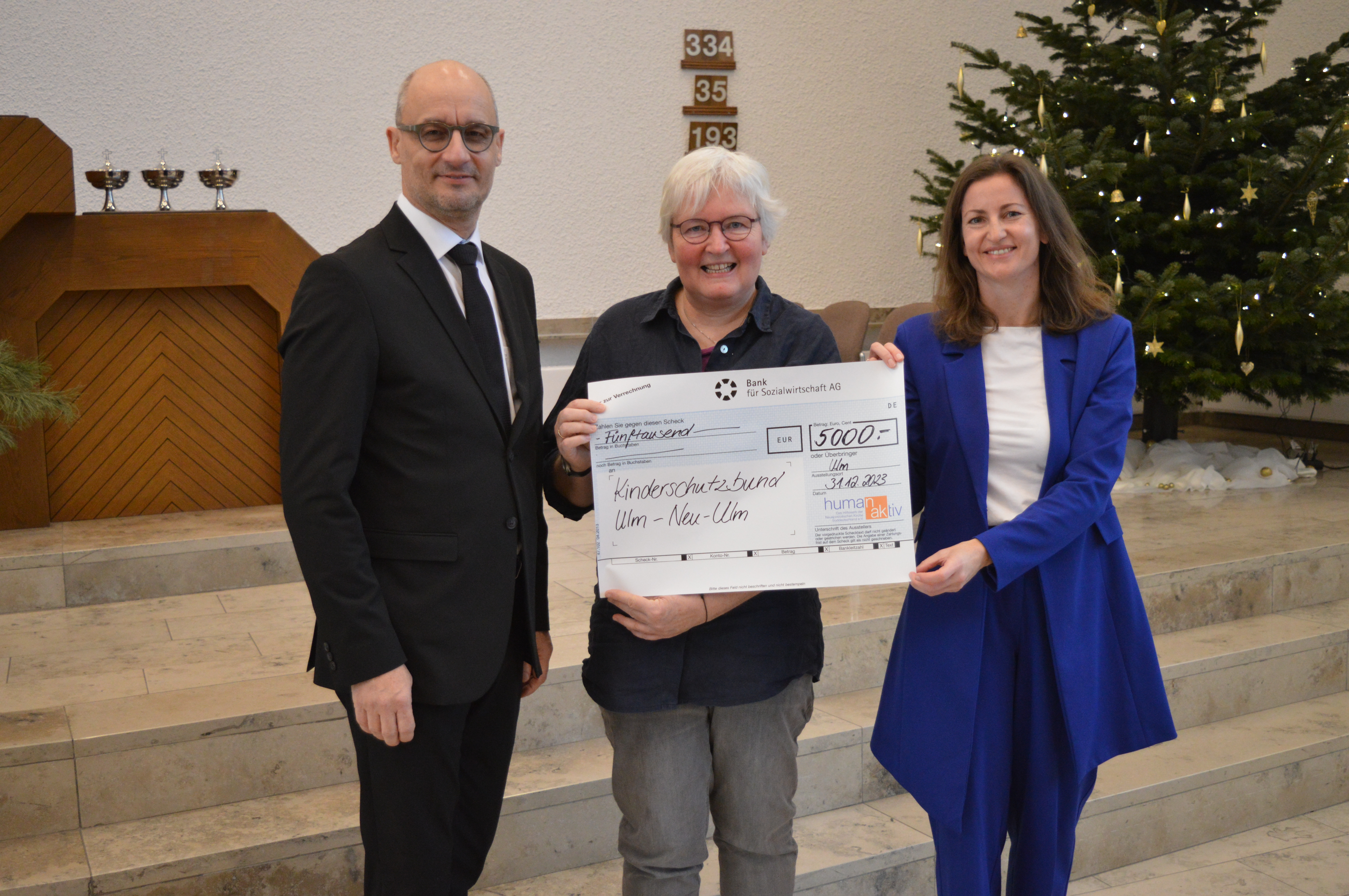 Der Betrag wurde zusätzlich von "human aktiv" aufgestockt, so dass Bettina Müller, Vorsitzende des Kinderschutzbund Ulm/Neu-Ulm, einen Scheck über 5000 Euro entgegennehmen konnte. Sie bedankte sich bei den Gottesdienstbesuchern und allen Beteiligten, die mit ihrer Spende einen Beitrag zum Wohl zahlreicher Kinder geleistet hätten. "Da haben Sie uns und vielen Kindern ein tolles Geschenk gemacht" freute sie sich bei der Scheckübergabe am letzten Tag des jahres 2023. Dank der Spende könne einigen Kindern ein Gespräch und Hilfe angeboten werden, die bereits dringend auf Unterstützung gewartet hätten.