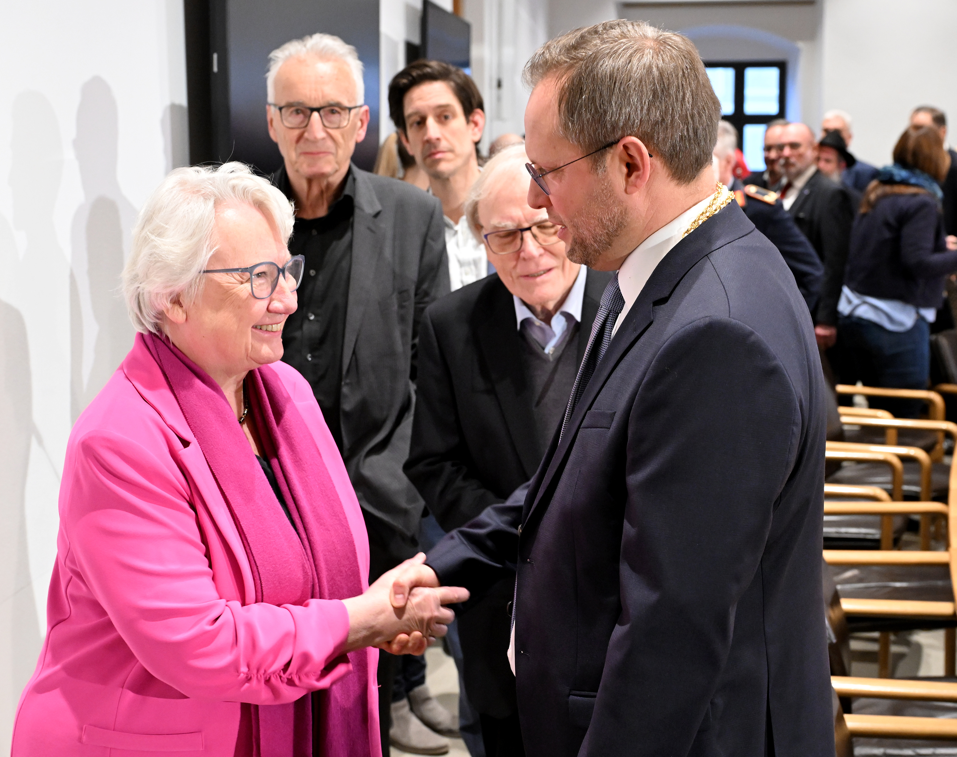 Im Folgenden wurde Gentges deutlich ernster: „Sie übernehmen die Verantwortung für diese große und wunderschöne Stadt in diesen schwierigen und bewegten Zeiten.“ Der Ton in verschiedenen Debatten habe sich verschärft, Verantwortungsträger würden sich zunehmend Aggressionen gegenüber sehen. „Zu unseren Aufgaben als Amts- und Mandatsträger gehört, dem entgegenzuwirken - gerade jetzt – indem wir Haltung zeigen, Position beziehen und einen hohen Anspruch an unsere eigene Debattenkultur stellen.“