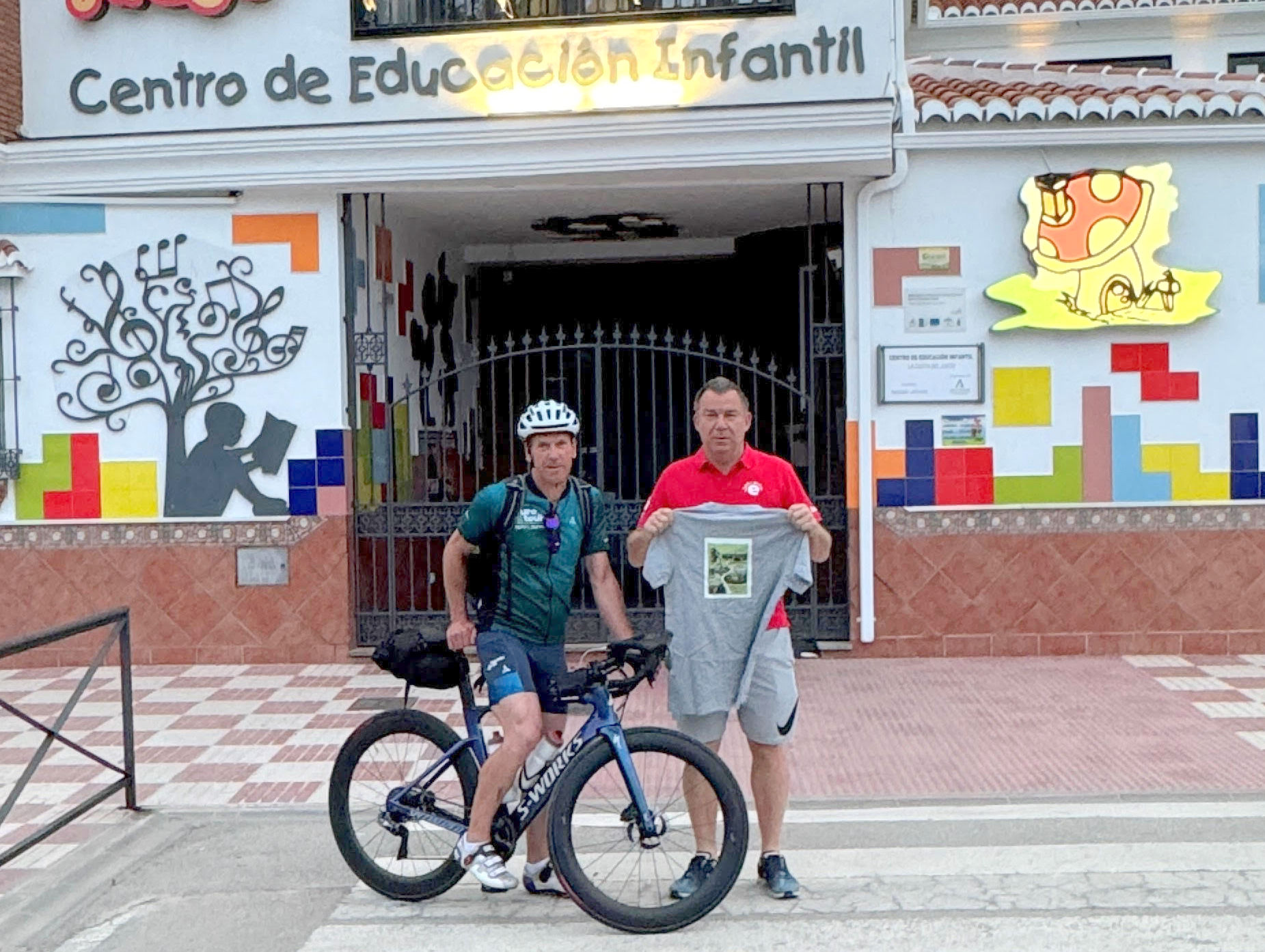Bei sommerlichen 20 Grad um 7 Uhr schickte Einstein-Marathon-Partner Markus Ebner seinen Kollegen gestern auf die Reise nach Norden. Die ersten drei Etappen vom eigentlichen Tourbeginn in Gibraltar bis zum offiziellen Start in Huetor Tajar hatte Hummel als Prolog schon in den letzten Tagen hinter sich gebracht. Bereits vor zwei Jahren hatten der Ulmer ebenfalls mit dem Rad erfolgreiche die Strecke von der Nordsee an die Adria zurückgelegt.