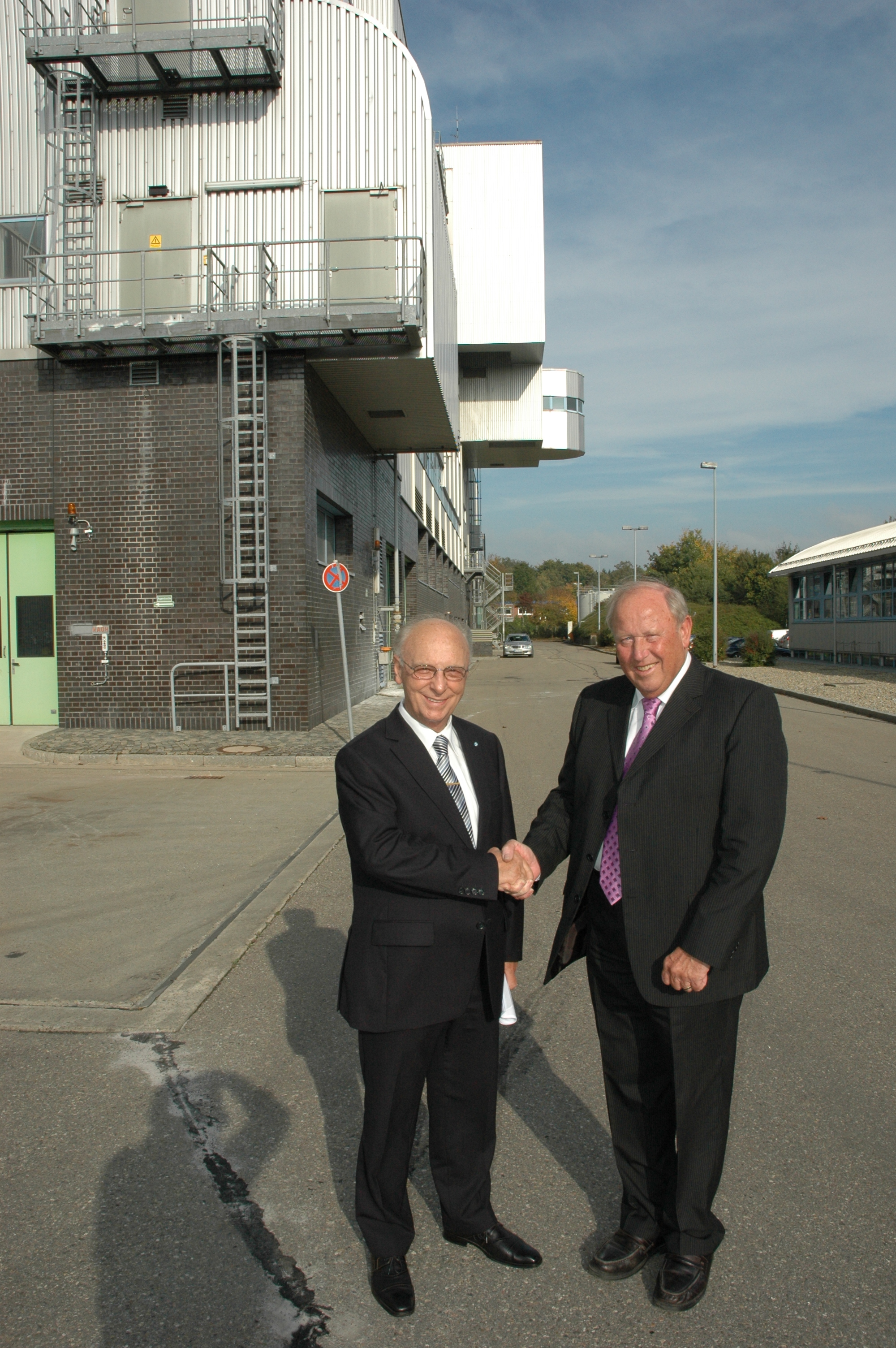 Foto: Alles Gute für die Zukunft: Landrat Erich Josef Geßner verabschiedete den lang gedienten Werkleiter des Kreisabfallwirtschaftsbetriebs, Günter Kunz, auf dem Gelände des Müllkraftwerks in Weißenhorn in den Ruhestand.